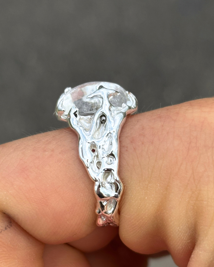 Void featuring a glossy clear quartz studded with vines, stars, and spirals. Guaranteed to hold the reflections of everything around you.